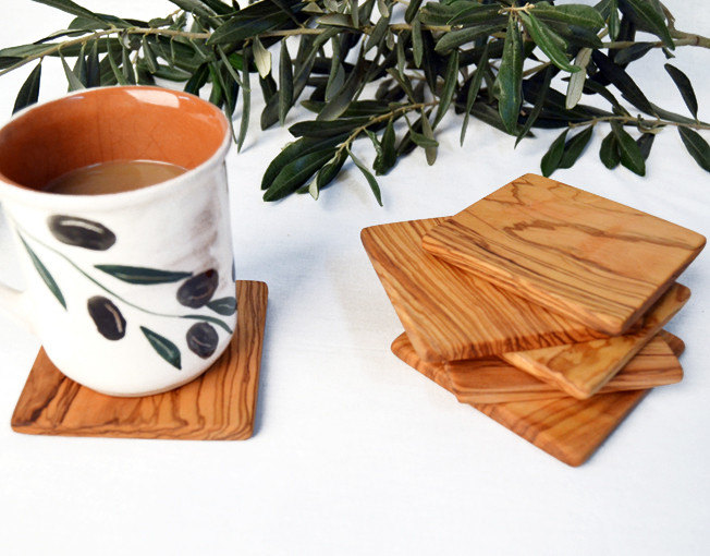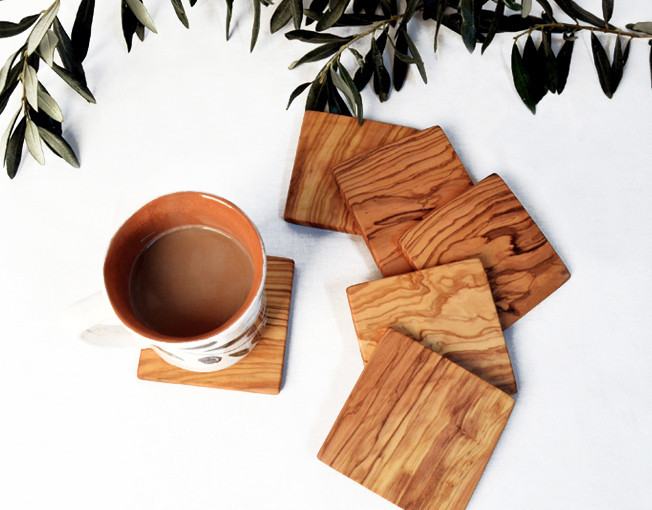 Zeytin ağacı, el yapımı, 6 adet kare bardak altlığı