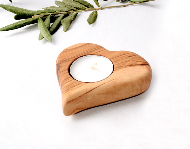 Zeytin ağacı, el yapımı, kalp şeklinde mumluk