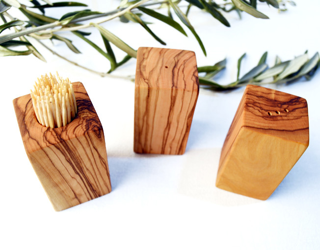 Zeytin ağacı, el yapımı, tuzluk-biberlik-kürdanlık